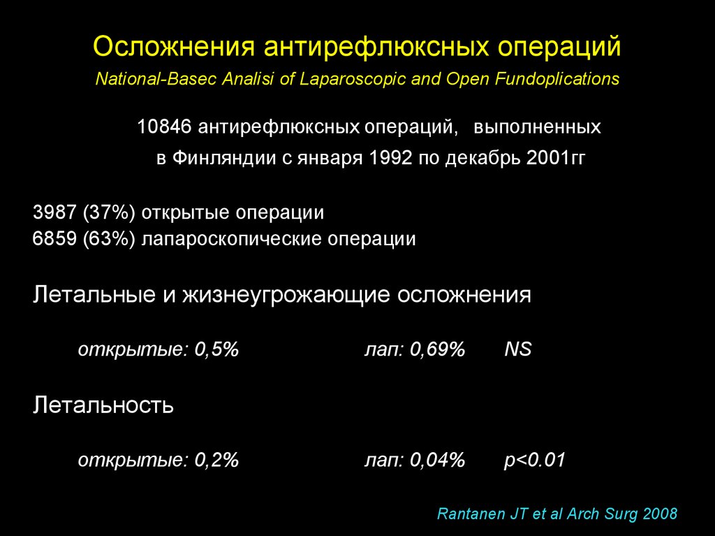 4. Осложнения антирефлюксных операций National-Basec Analisi of Laparoscopic and Open Fundoplications