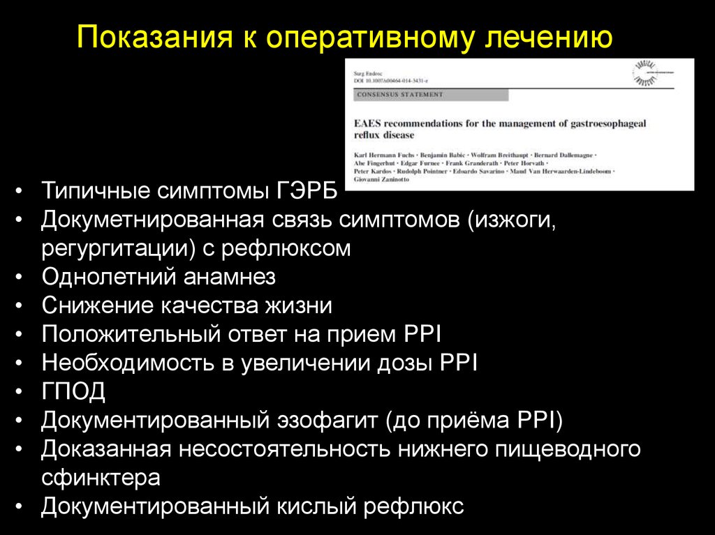 Показания к оперативному лечению• Типичные симптомы ГЭРБ