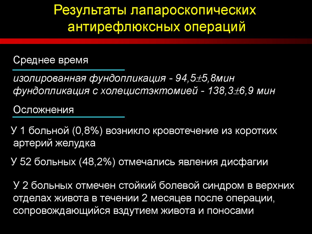 Результаты лапароскопическихантирефлюксных операций