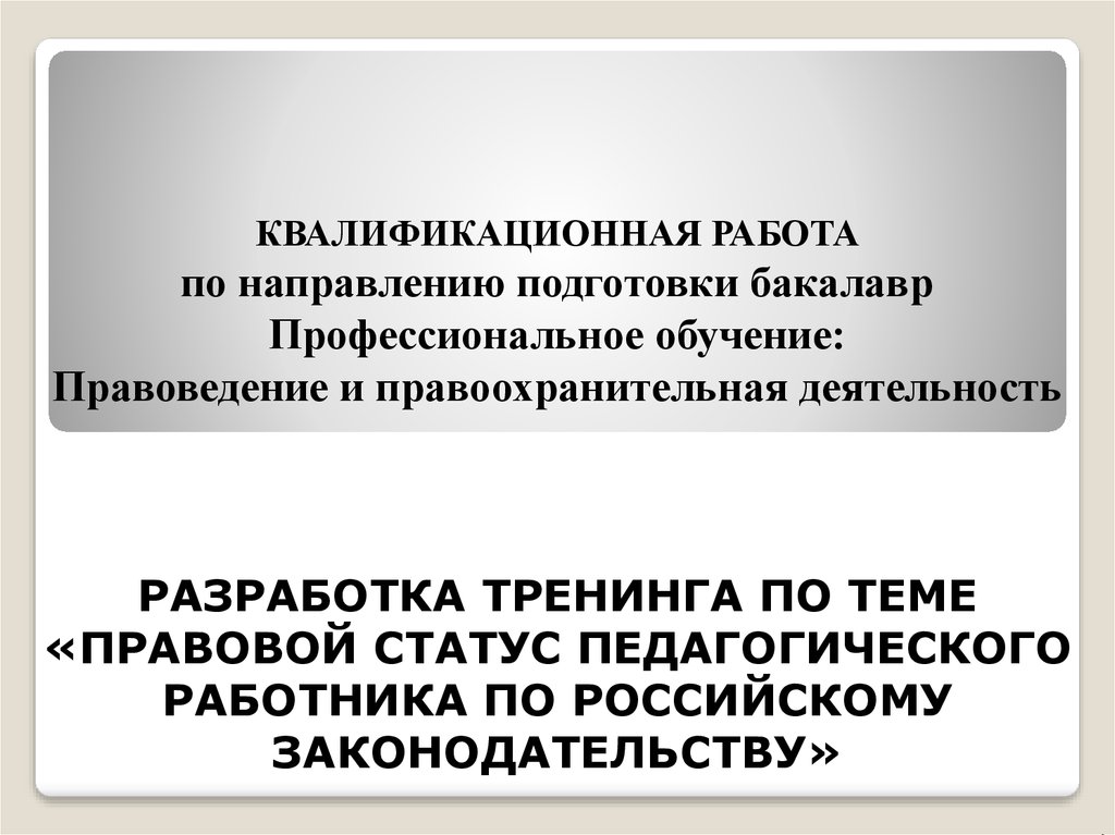 Цель тренинга - формирование осознания правовогостатуса педагогического работника по российскому