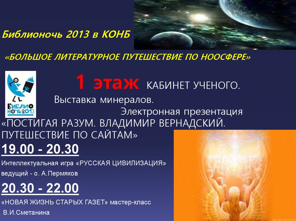 Библионочь 2013 в КОНБ«БОЛЬШОЕ ЛИТЕРАТУРНОЕ ПУТЕШЕСТВИЕ ПО НООСФЕРЕ»