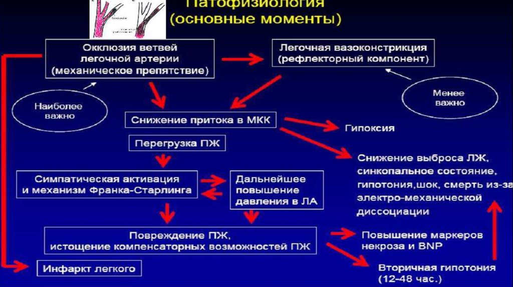 Острое развитие легочной гипертензии (острое легочное сердце) в результате