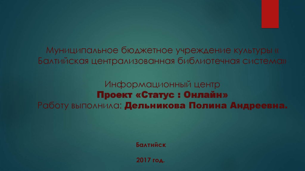 Муниципальное бюджетное учреждение культуры «Балтийская централизованная библиотечная система»