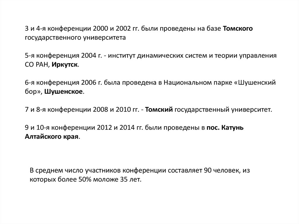 3 и 4-я конференции 2000 и 2002 гг. были проведены на базе Томскогогосударственного университета