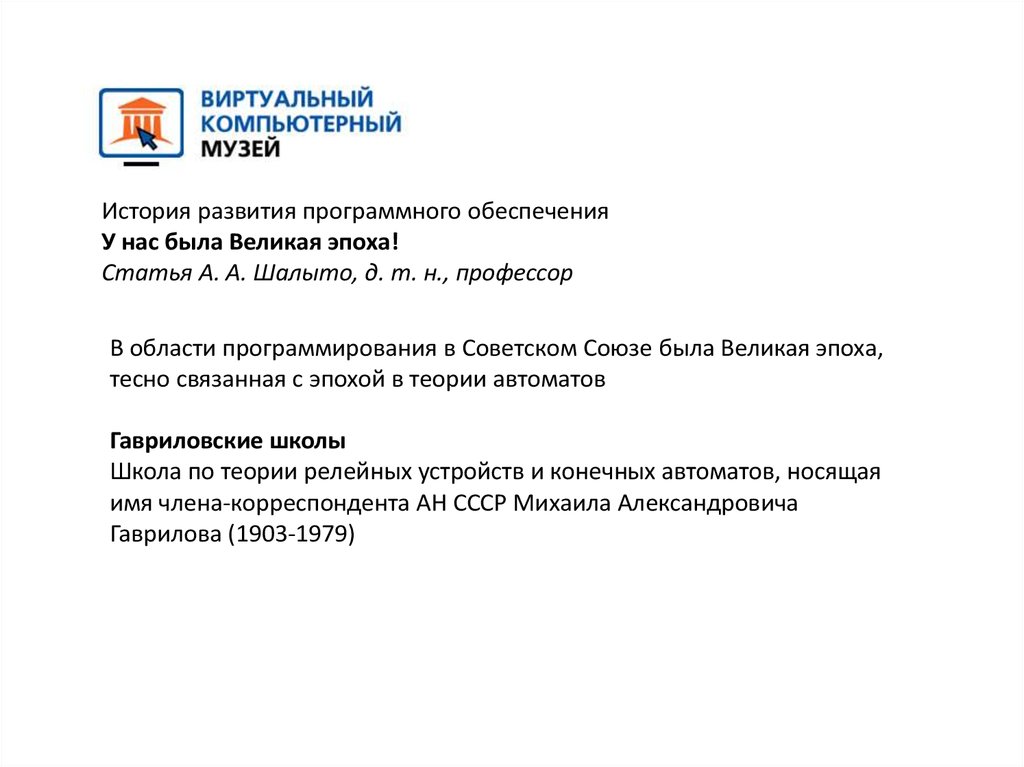 История развития программного обеспеченияУ нас была Великая эпоха!