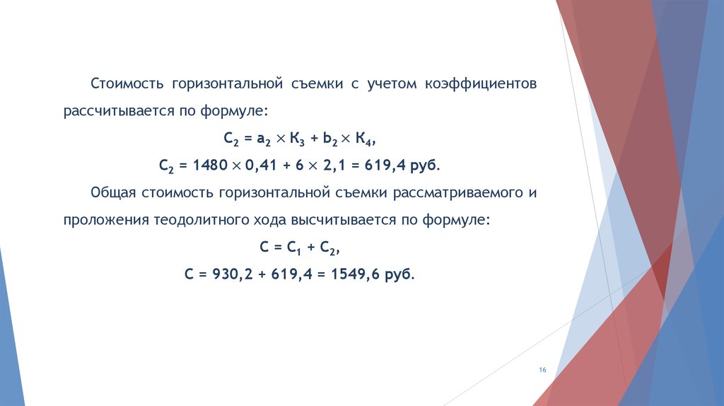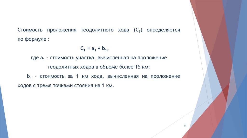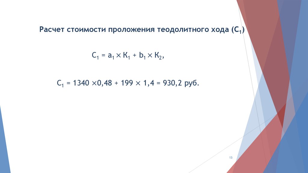 Стоимость проложения теодолитного хода (С1) определяетсяпо формуле :