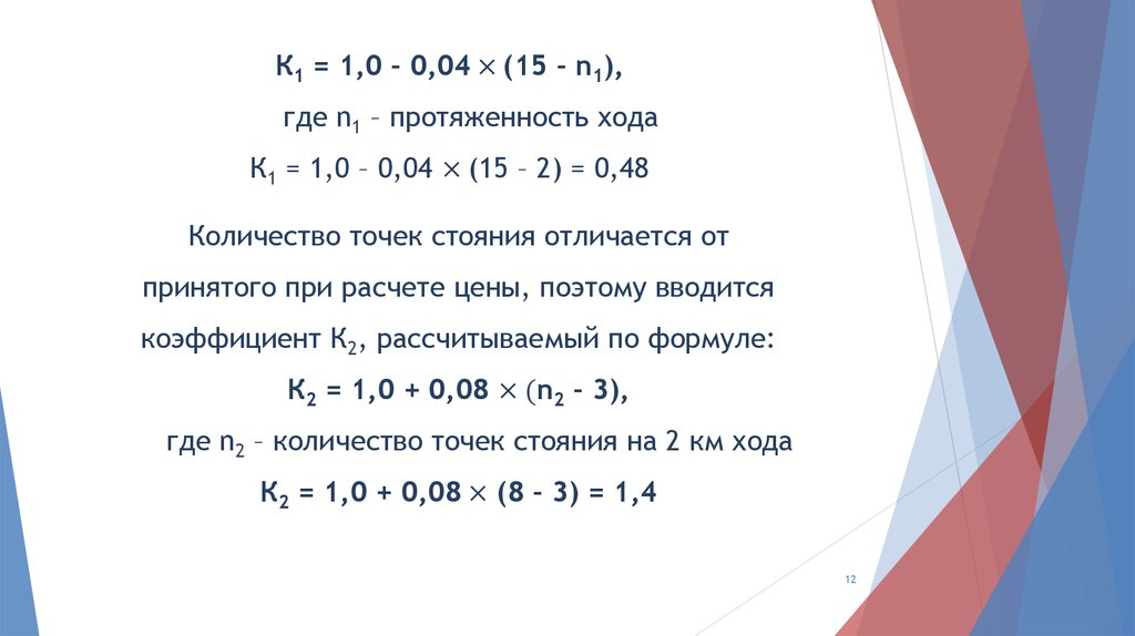 b1 – стоимость за 1 км хода, вычисленная на проложение