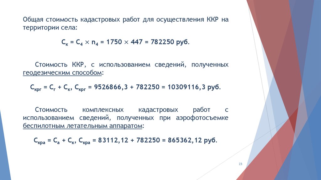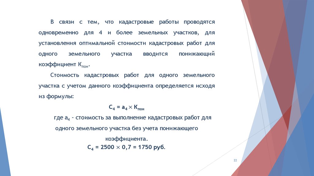кадастровых работ определяется по формуле: