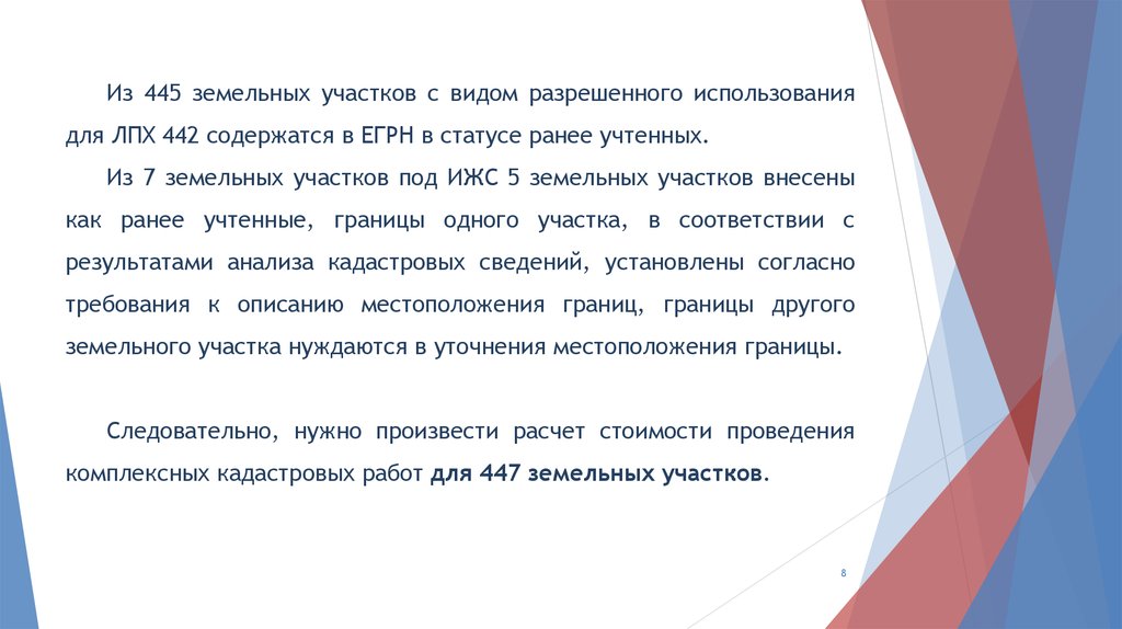 комплексных кадастровых работ для 447 земельных участков.