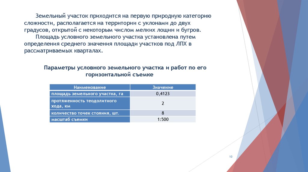Параметры условного земельного участка и работ по его