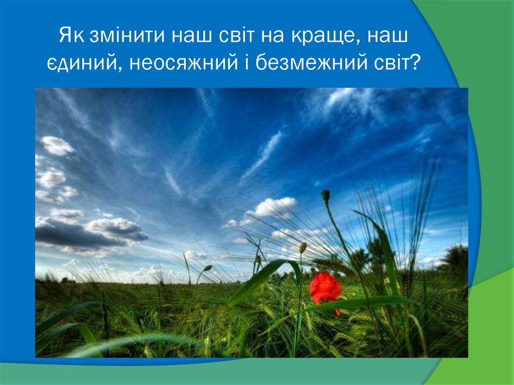 2. Як змінити наш світ на краще, наш єдиний, неосяжний і безмежний світ?