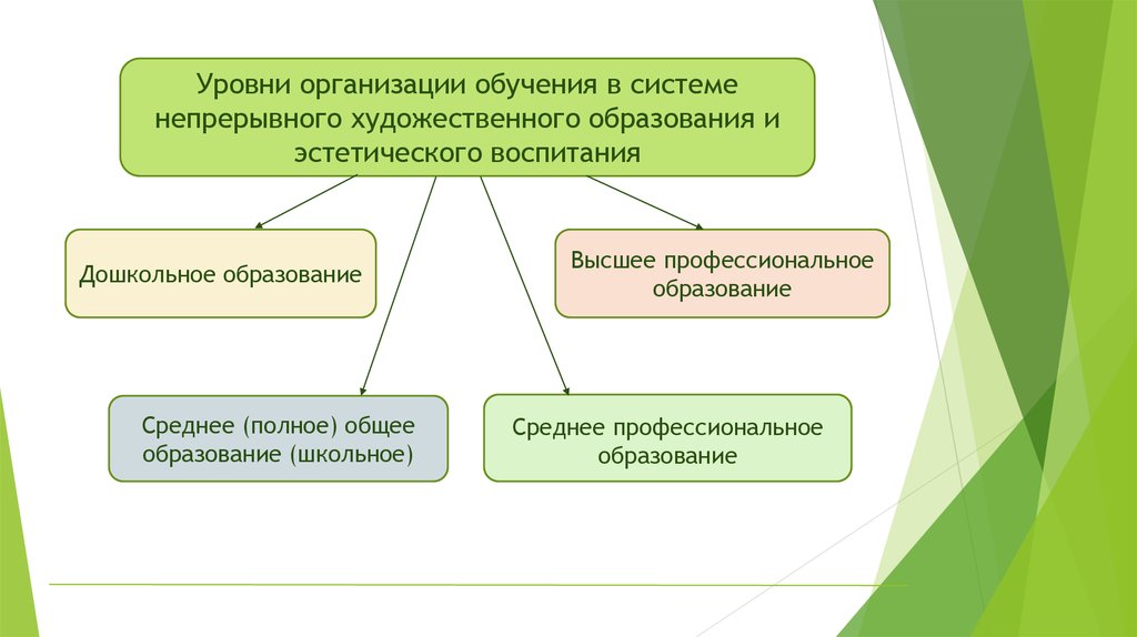 Уровни организации обучения в системенепрерывного художественного образования и