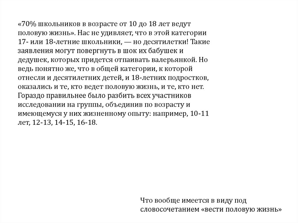 «70% школьников в возрасте от 10 до 18 лет ведутполовую жизнь». Нас не удивляет, что в этой категории