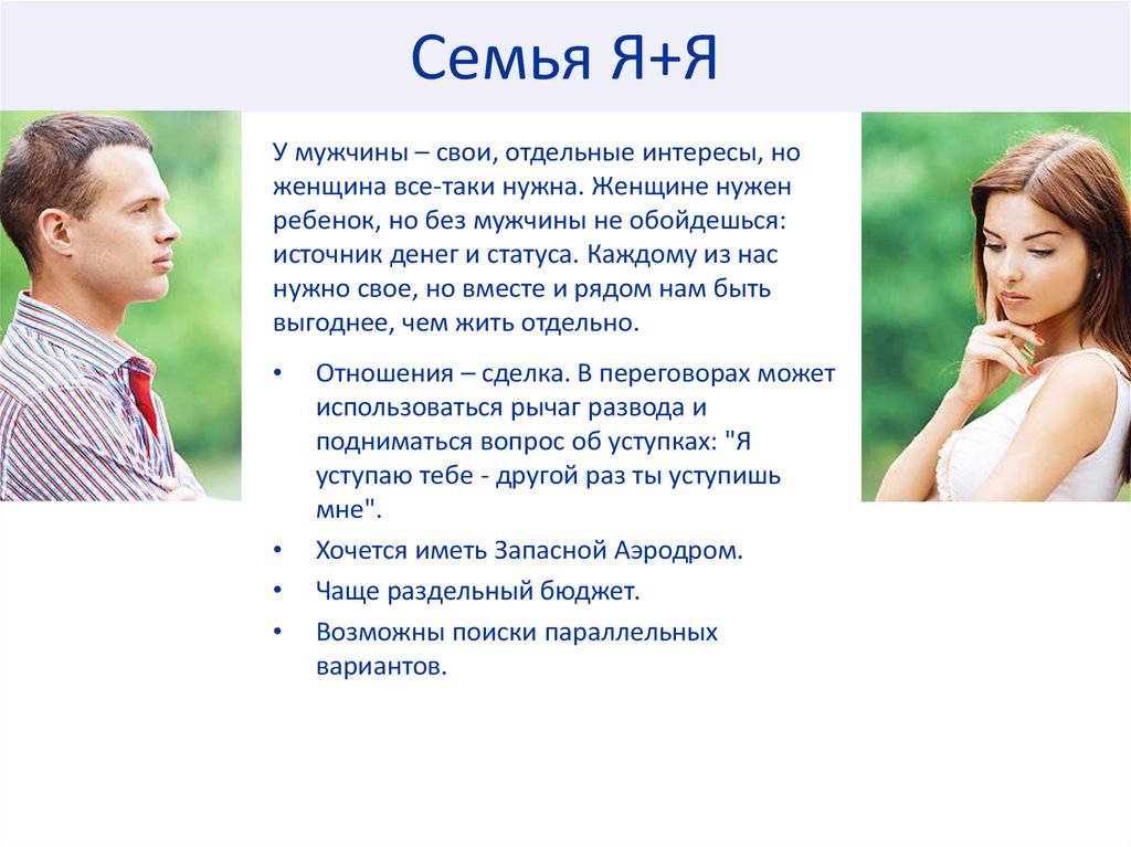 У мужчины – свои, отдельные интересы, ноженщина все-таки нужна. Женщине нужен