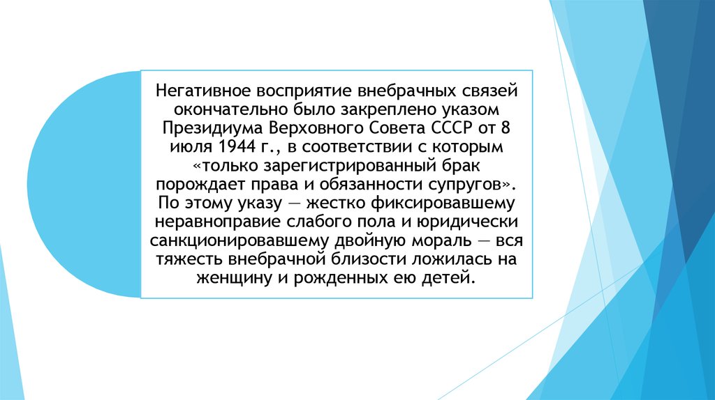 Негативное восприятие внебрачных связейокончательно было закреплено указом