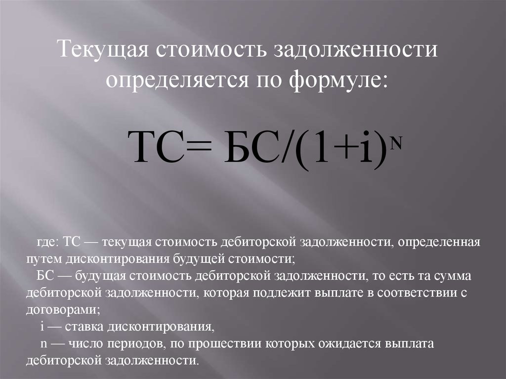 где: ТС — текущая стоимость дебиторской задолженности, определенная
