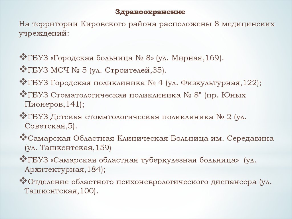 ЗдравоохранениеНа территории Кировского района расположены 8 медицинских