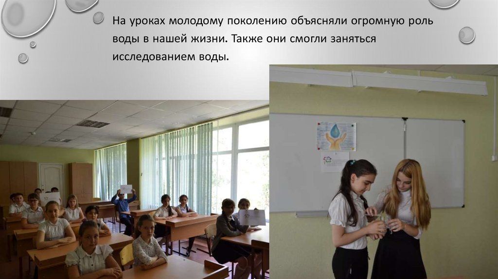 На уроках молодому поколению объясняли огромную рольводы в нашей жизни. Также они смогли заняться