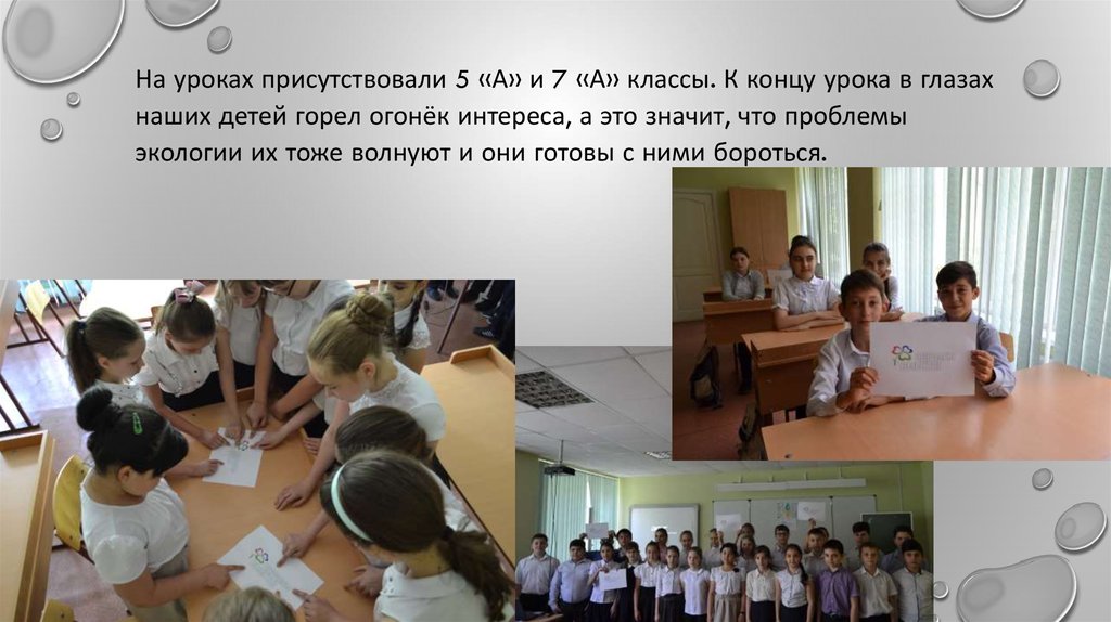 На уроках присутствовали 5 «А» и 7 «А» классы. К концу урока в глазахнаших детей горел огонёк интереса, а это значит, что проблемы