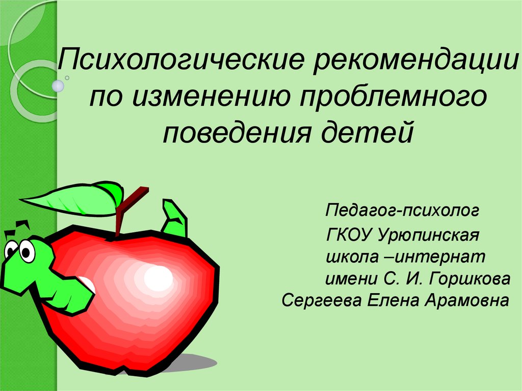 1. Психологические рекомендации по изменению проблемного поведения детей Педагог-психолог ГКОУ Урюпинская школа –интернат имени С.