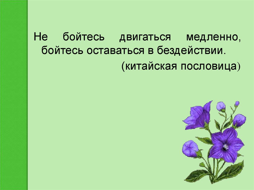 Не бойтесь двигаться медленно,бойтесь оставаться в бездействии.