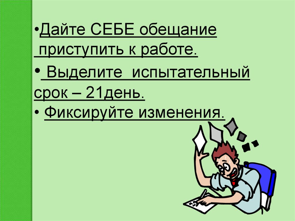 •Дайте СЕБЕ обещаниеприступить к работе.