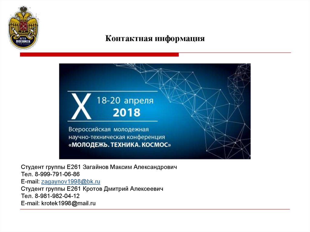 Контактная информацияСтудент группы Е261 Загайнов Максим Александрович