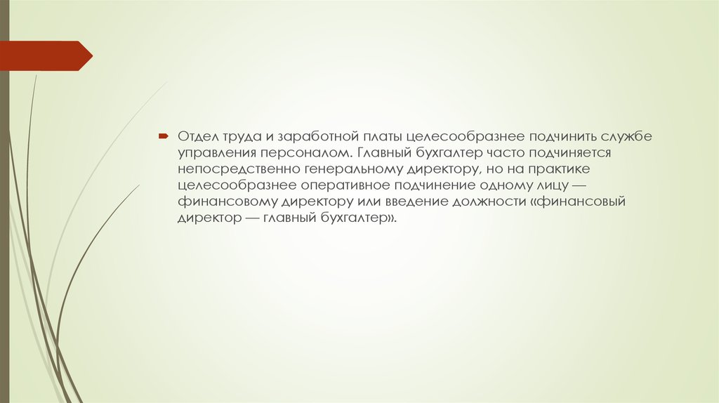 Отдел труда и заработной платы целесообразнее подчинить службеуправления персоналом. Главный бухгалтер часто подчиняется
