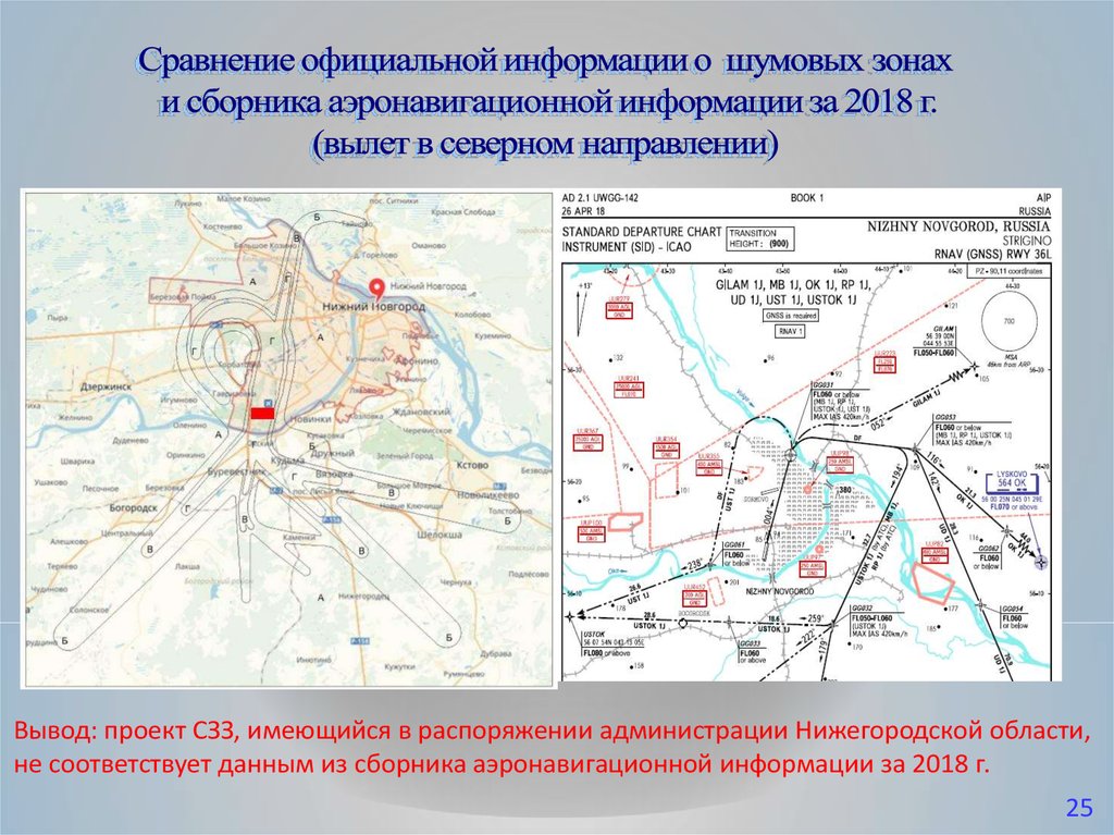 Вывод: проект СЗЗ, имеющийся в распоряжении администрации Нижегородской области,не соответствует данным из сборника аэронавигационной информации за 2018 г.