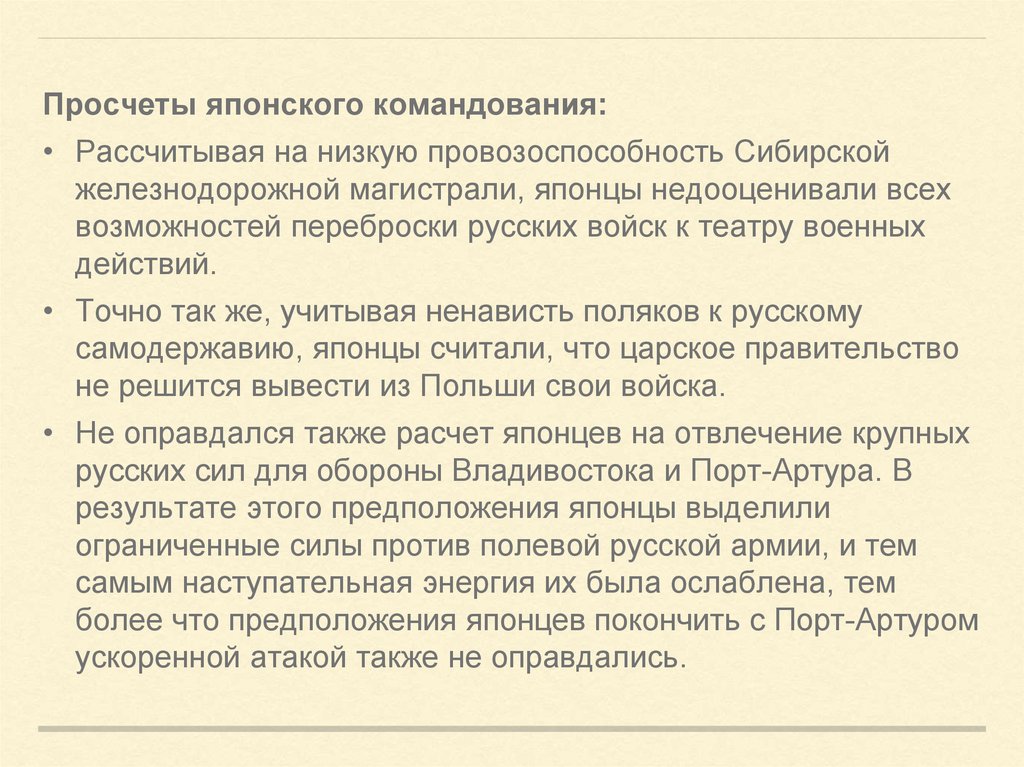Просчеты японского командования:• Рассчитывая на низкую провозоспособность Сибирской