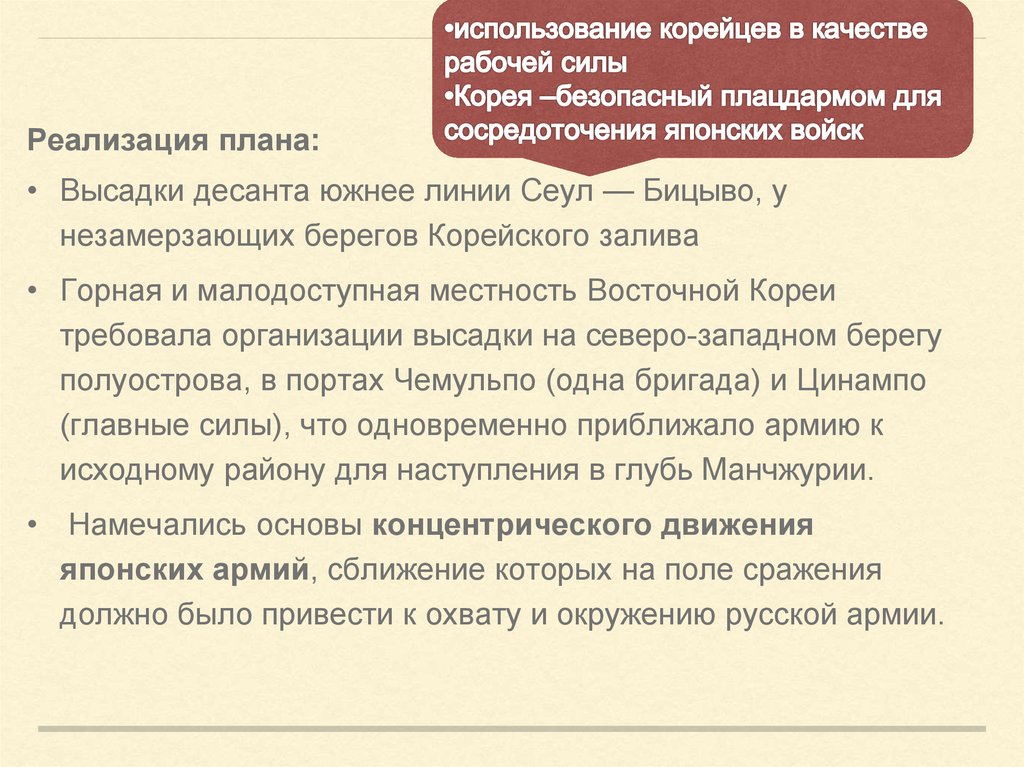 Реализация плана:• Высадки десанта южнее линии Сеул — Бицыво, у