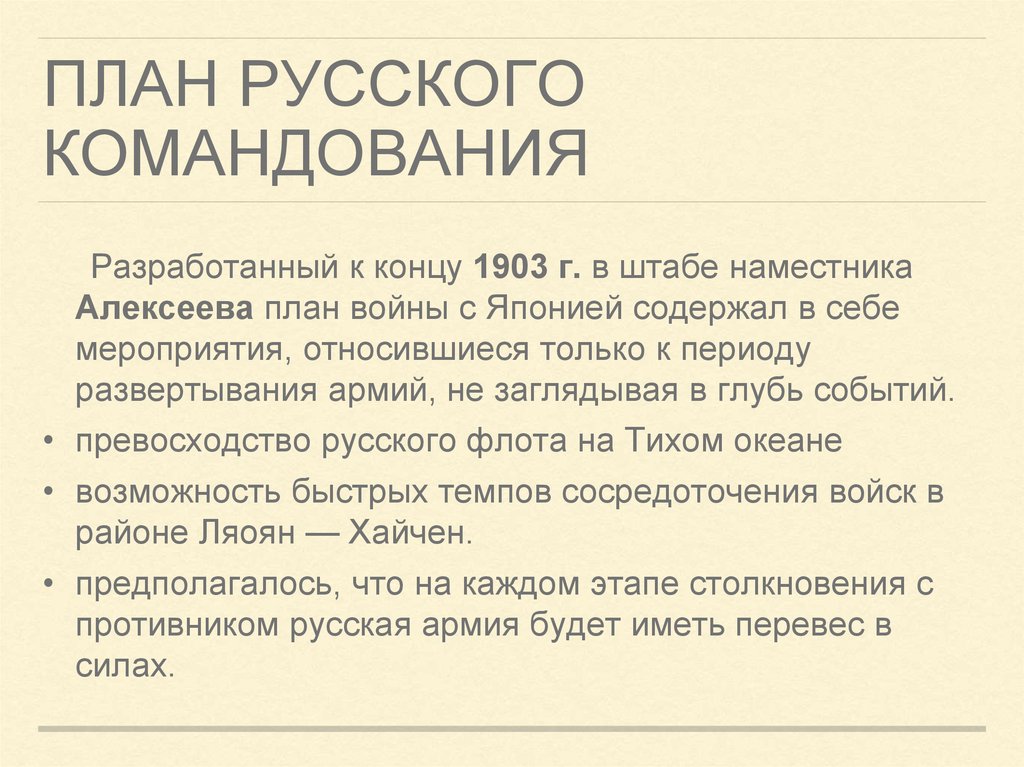 РУССКО-ЯПОНСКАЯ ВОЙНАСИЛЫ И ПЛАНЫ