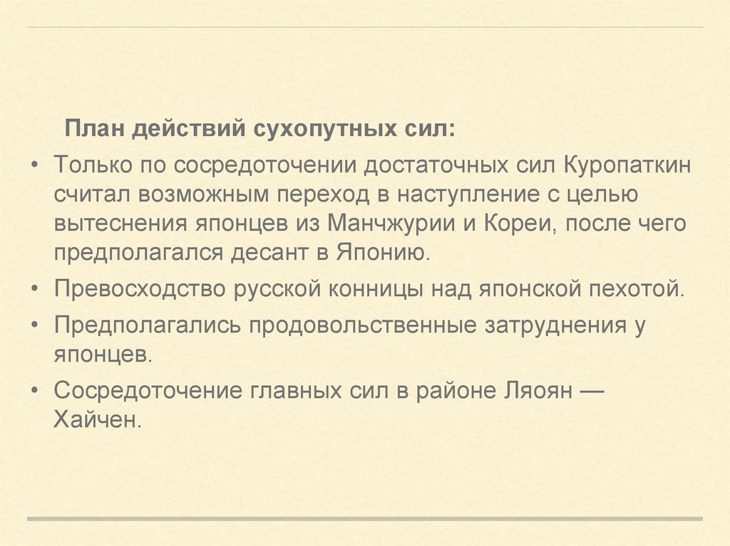 действий армии и флота в плане Куропаткина не