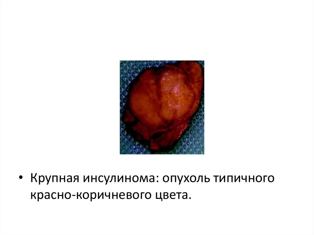 • Крупная инсулинома: опухоль типичногокрасно-коричневого цвета.
