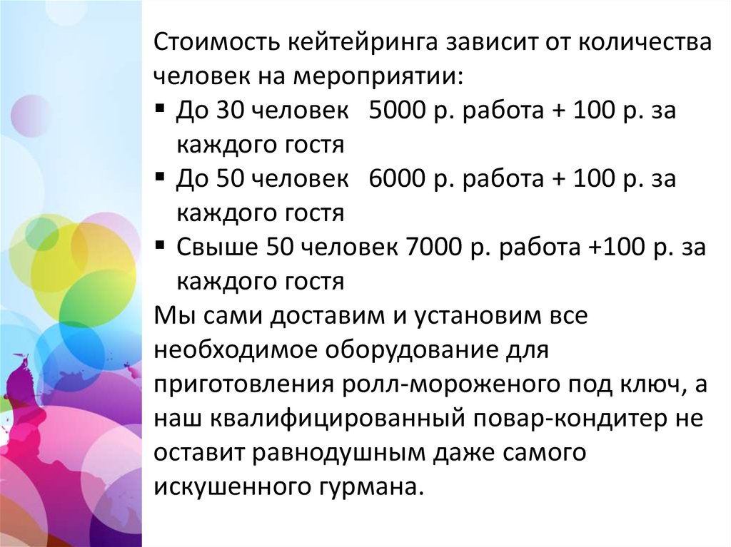 Стоимость кейтейринга зависит от количествачеловек на мероприятии: