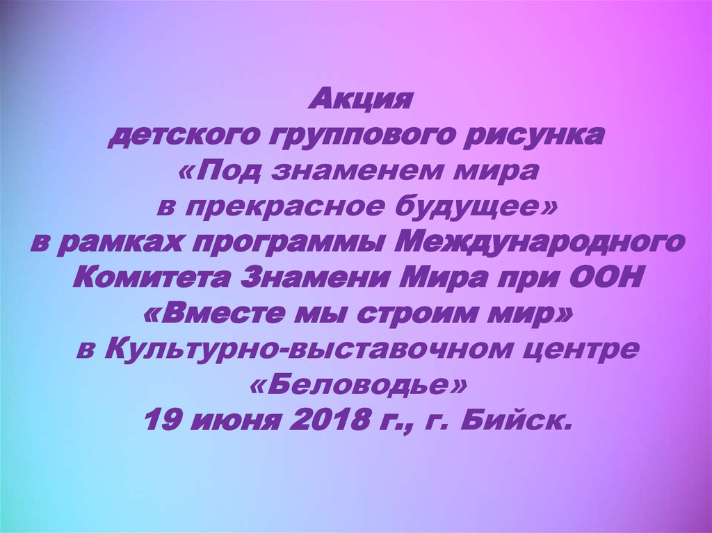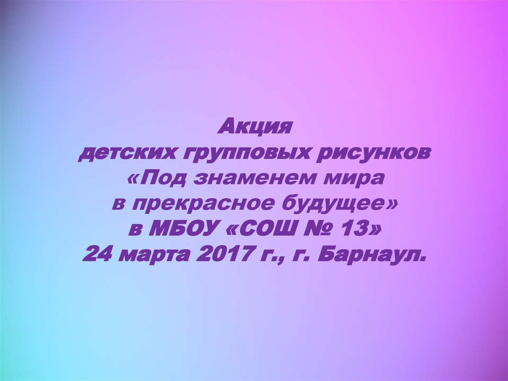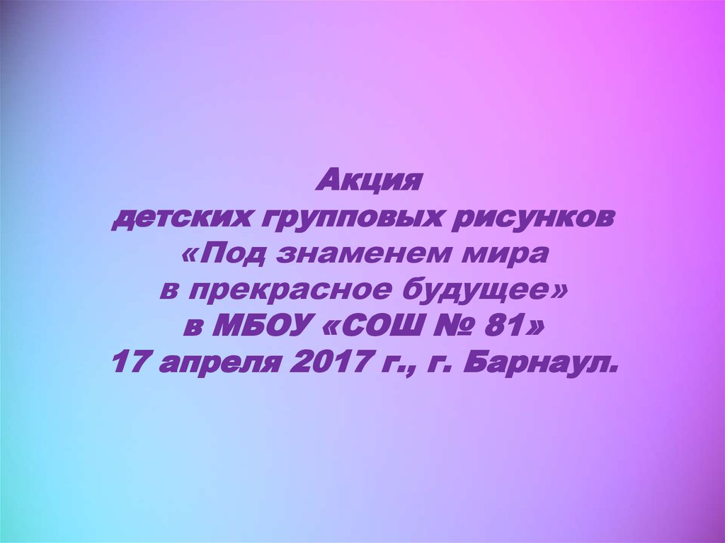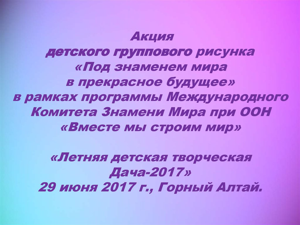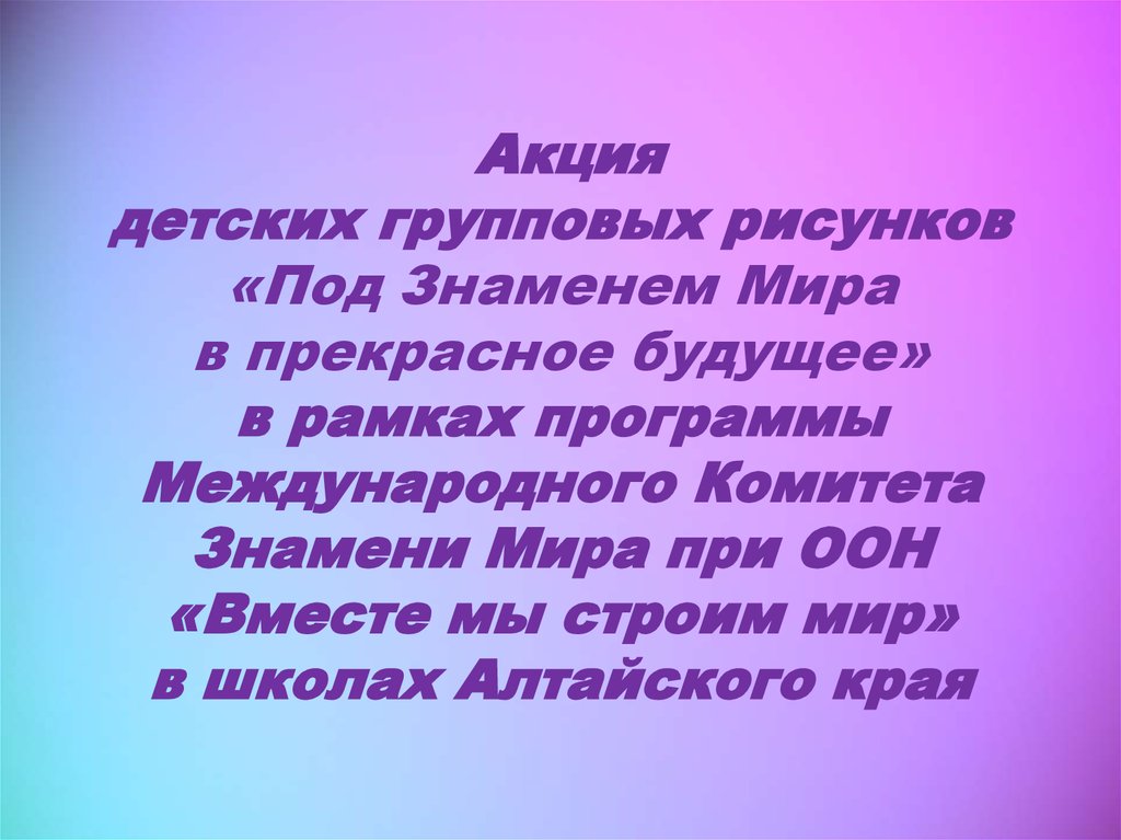 Акция детских групповых рисунков «Под Знаменем Мира в прекрасное будущее» в школах Алтайского края