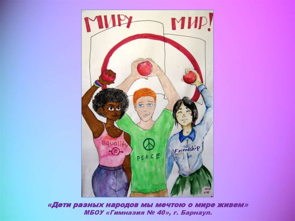 «Дети разных народов мы мечтою о мире живем»МБОУ «Гимназия № 40», г. Барнаул.