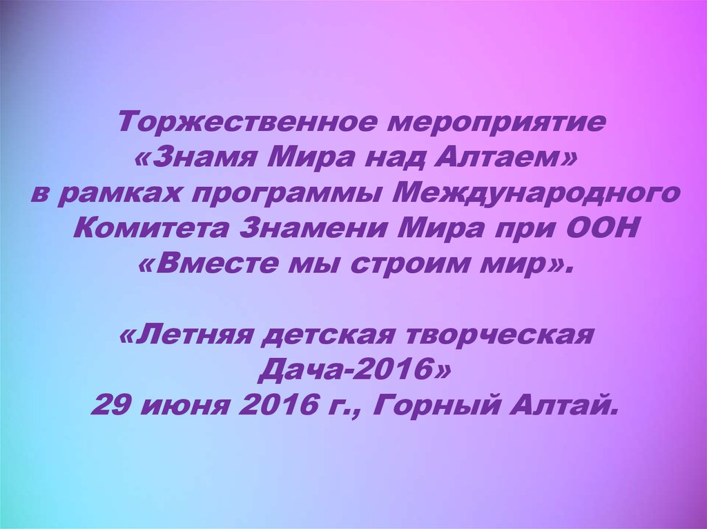 Торжественное мероприятие«Знамя Мира над Алтаем»