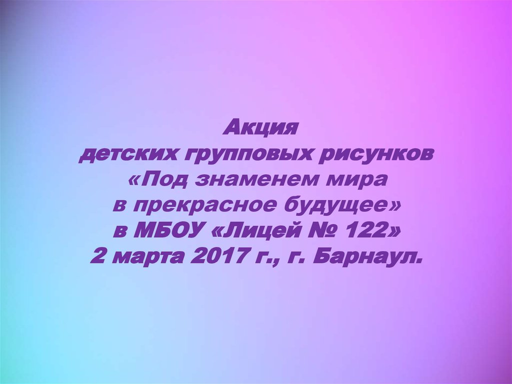 «Молодежь стремится к миру»МБОУ «Лицей № 122», г. Барнаул