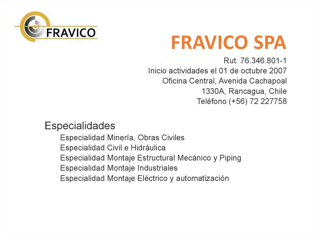 Inicio actividades el 01 de octubre 2007