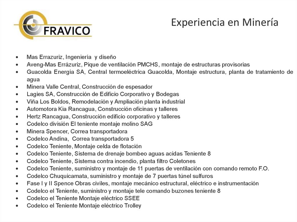 Experiencia en MineríaMas Errazuriz, Ingeniería y diseño