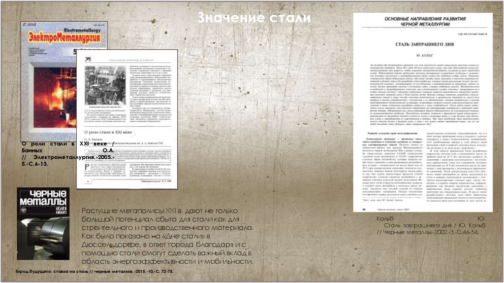 Город будущего: ставка на сталь // черные металлов.-2015.-10.-С. 72-75.