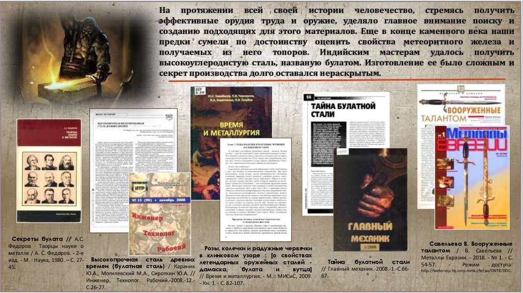 изд. - М. : Наука, 1980. – С. 27- Высокопрочная сталь древних