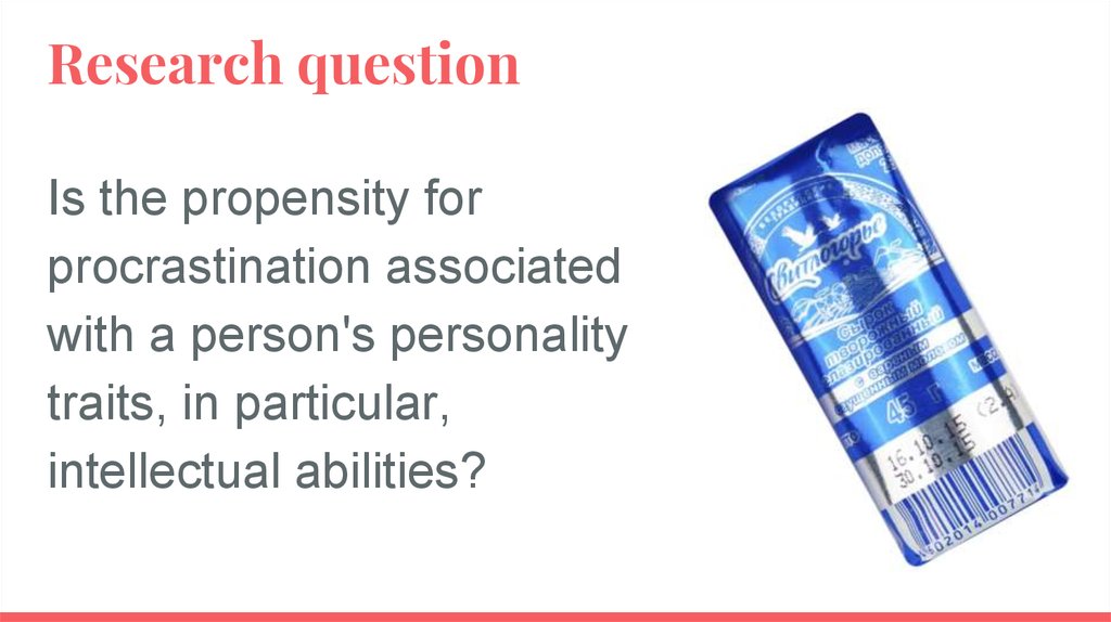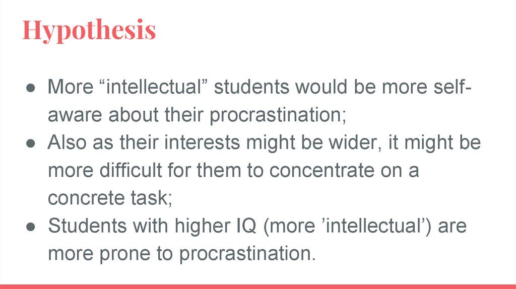 Hypothesis● More “intellectual” students would be more selfaware about their procrastination;