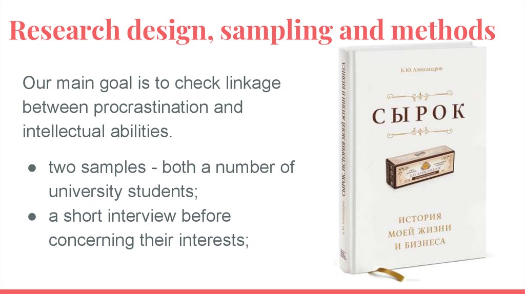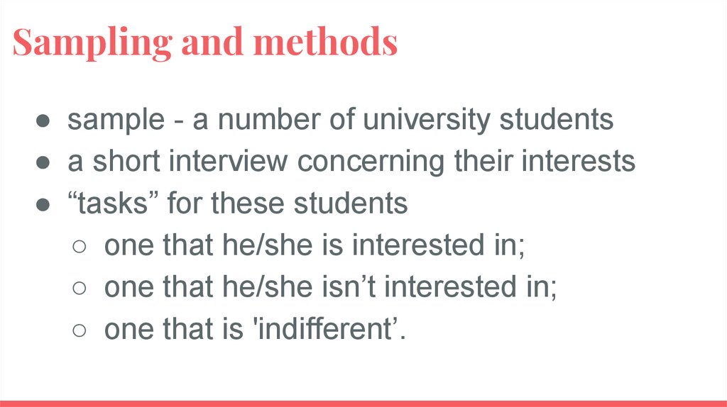 Sampling and methods● sample - a number of university students