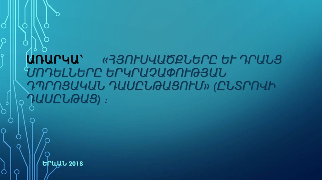 1. Առարկա՝ «Հյուսվածքները եւ դրանց մոդելները երկրաչափության դպրոցական դասընթացում» (ընտրովի դասընթաց) :