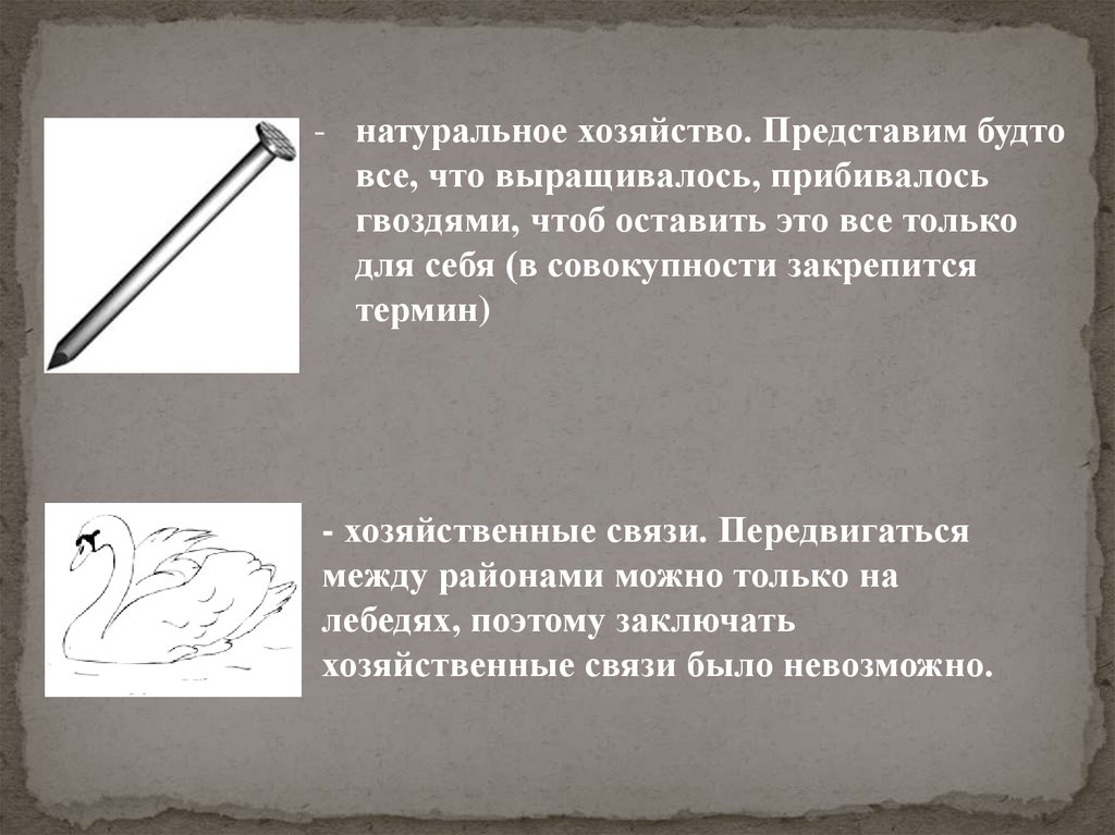 - натуральное хозяйство. Представим будтовсе, что выращивалось, прибивалось