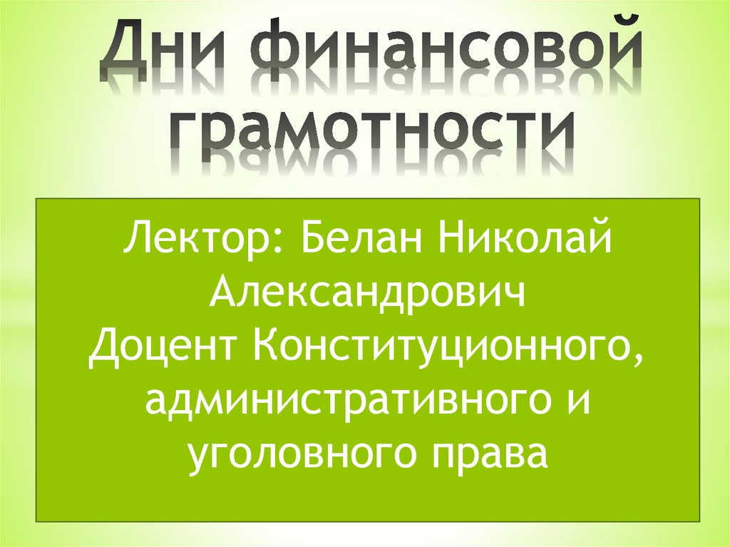 Законодательство РФ в области экономической и финансовой грамотности. Стратегия повышения финансовой грамотности в РФ. Лекция 1