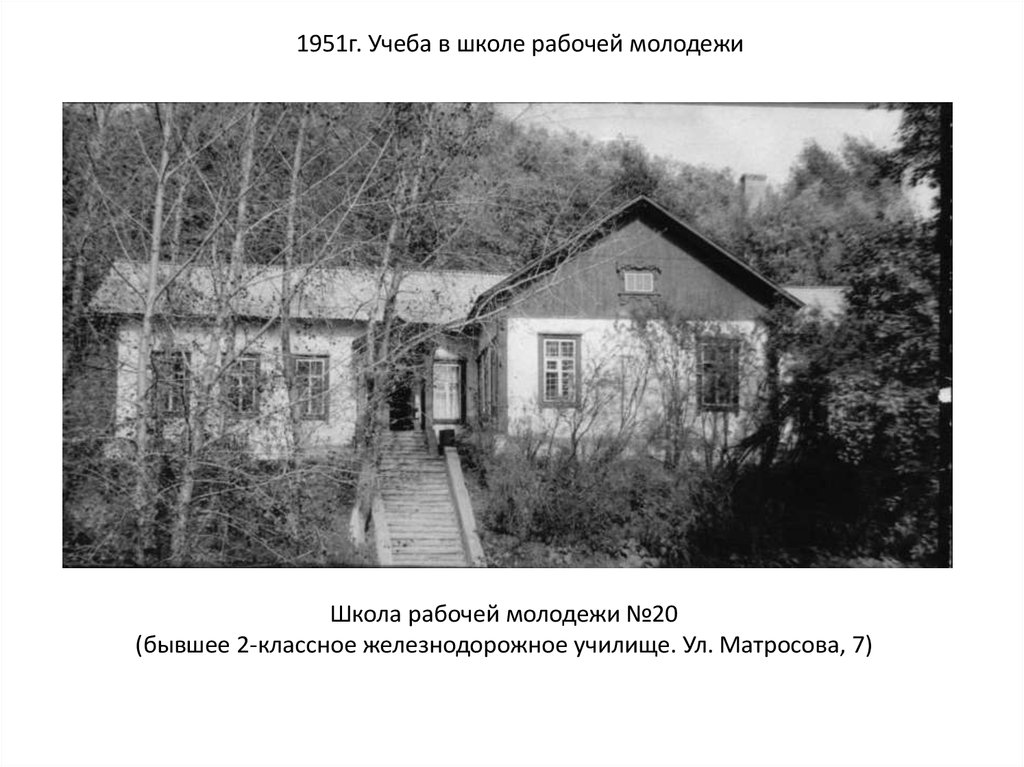 1951г. Учеба в школе рабочей молодежиШкола рабочей молодежи №20