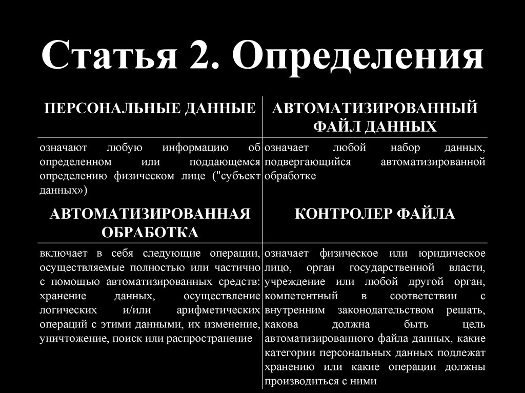 Статья 2. ОпределенияПЕРСОНАЛЬНЫЕ ДАННЫЕ